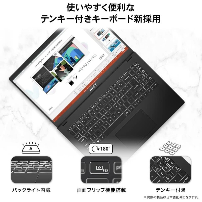 【搭载*2代英特尔*新CPU・轻薄】MSI商务笔记本电脑PC Modern15 1.7kg i7 IrisXe/15.6FHD/16GB/512GB/Windows11/Modern-15-B12M-063JP