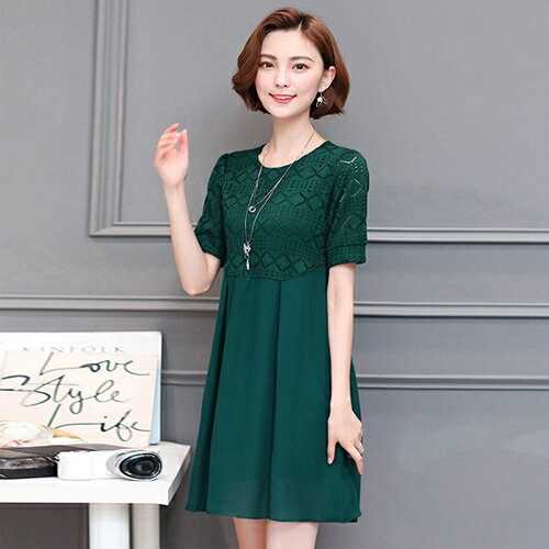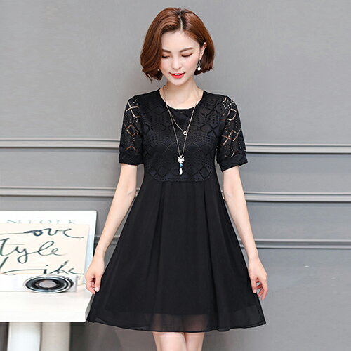 蕾絲鏤空連身裙(3色L~5XL) 【OREAD】