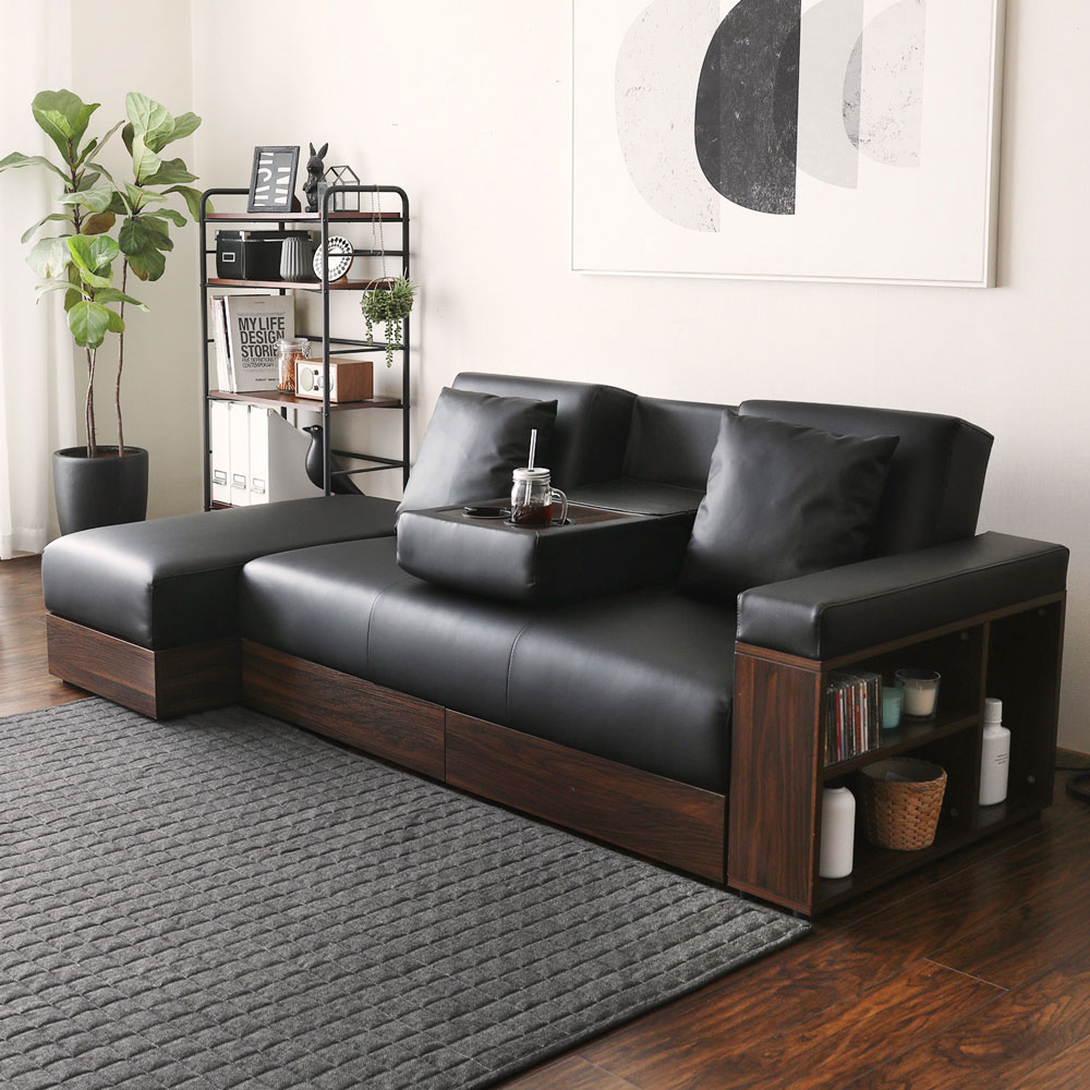 麥西蒙日式多功能收納沙發床-5色?尺寸:主體:總寬157 x 總深75 x 總高80.5~37腳凳:總寬100 x 總深50 x 總高37※單位cm,其他尺寸請參考圖片?材質:布:聚酯纖維仿棉麻布手感、泡棉、公仔棉、MDF板、木骨架、塑膠腳粒、彈性織帶、S型彈簧皮: PVC仿皮、泡棉、公仔棉、MDF板、木骨架、塑膠腳粒、彈性織帶、S型彈簧?其他說明:每座沙發皆附兩顆同色抱枕。附四個收納空間可供收納。扶手附卡榫,可依居家格局變換方向。沙發主座中央背靠設置杯架可暫放飲料。三段式背靠,可依喜好調整至適當位置。布料款抱枕可拆洗。沙發扶手不得乘坐,以避免磨損扶手使用之壽命。