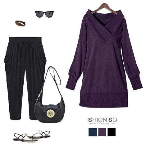 享瘦衣舍中大尺碼【B1025】時尚V領顯瘦高佻款長版上衣