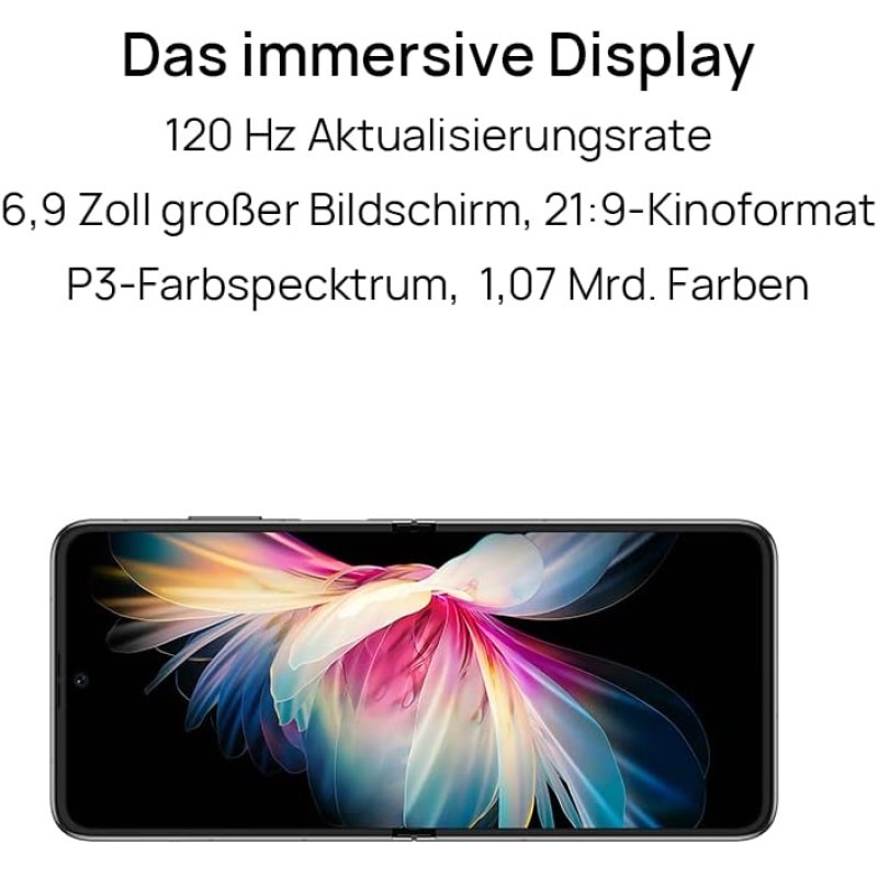 令人难以置信的视野:6.9英寸主显示屏上的21:9的比例让您沉浸在所看到的东西中。 由于屏幕刷新率为 120 Hz ,因此没有任何判断。 P3 广谱色彩包含超过 10 亿种颜色,确保逼真的颜色和图像。 由于纳米光学涂层,令人讨厌的反射不再是问题。 高频 PWM 1440 Hz 调光控制确保即使在低光照条件下也能舒适地观看